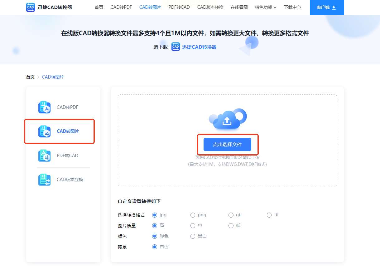 步骤二:在网站首页找到文件上传区域,点击上传你的CAD文件。需要注意的是,免费版本有文件大小限制,单个文件不能超过20M。