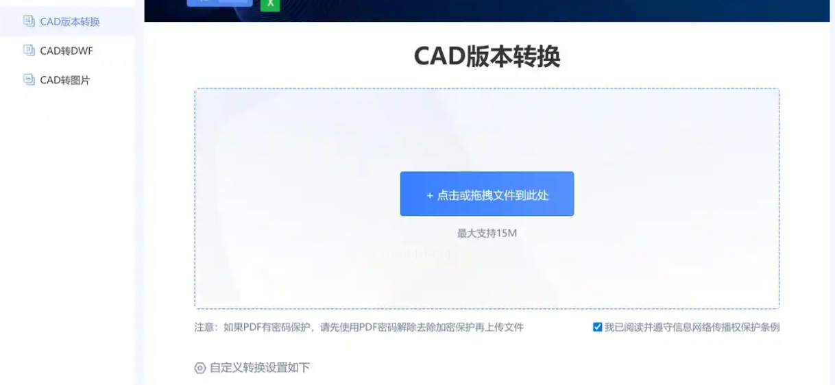 3. 上传文件:网页中间通常有一个非常友好的文件上传区域,可能是虚线框,也可能写着“点击上传”。把你电脑里的DWG文件拖进去,或者点击后从文件夹里选择。