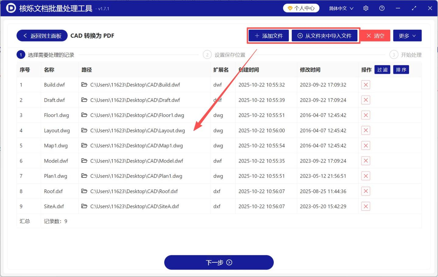 步骤二:文件批量导入