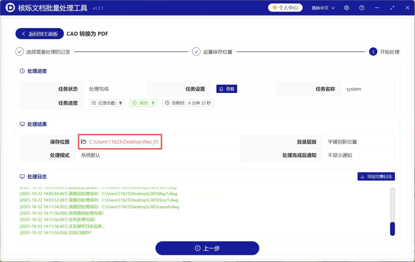 转换完成后,点击"保存位置"就能快速定位到生成的PDF文件。整个过程大约只需几秒钟到几十秒,具体取决于文件大小,而且输出的PDF会保持原CAD图纸的矢量精度,不会出现文字模糊或线条错位的问题。