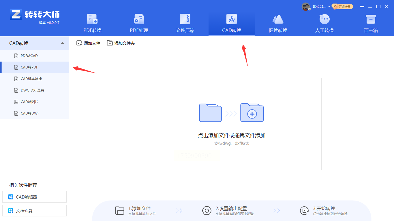 步骤一:获取并启动软件后,在主界面找到并选择“CAD转PDF”功能模块。