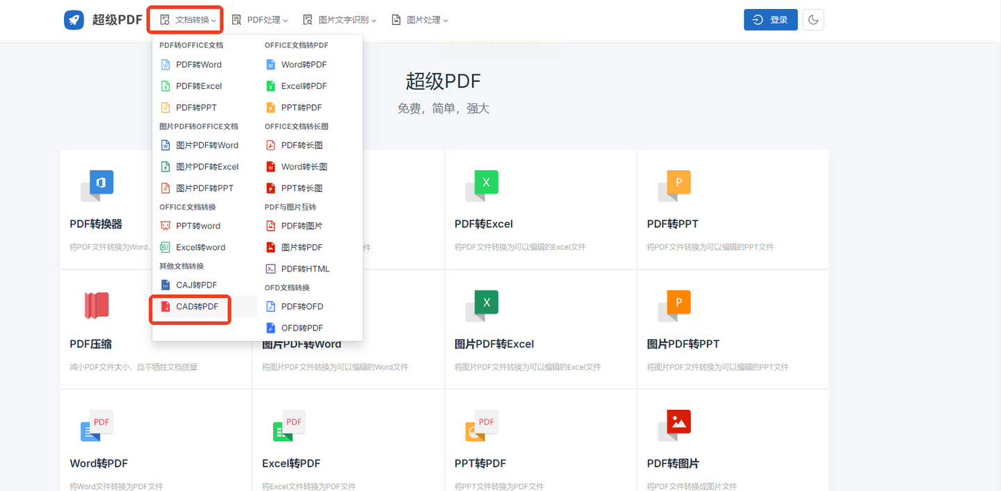 这个平台专门处理PDF相关任务,功能很集中。它的“CAD转PDF”功能藏在“文档转换”区域下的“其他文档转换”分类里,找的时候需要留意一下。