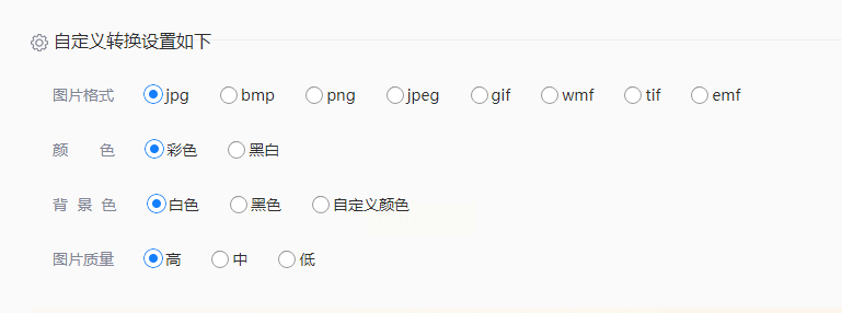步骤三:根据需要设置输出格式、颜色模式和图片质量。质量设置越高,输出文件越大。