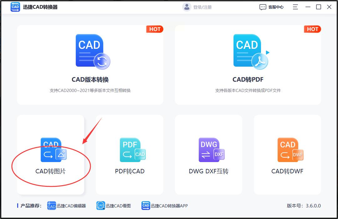 步骤一:启动软件,在主菜单中找到“CAD转图片”功能并点击进入。