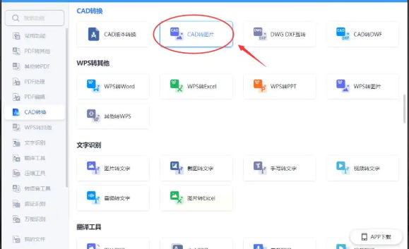 1. 打开软件后,在首页找到「CAD转图片」功能