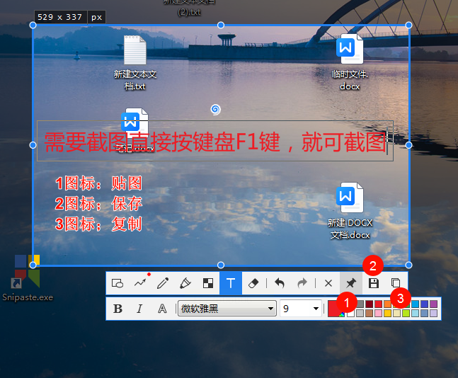 2. 按F1键(或点击工具栏「截图」按钮)
