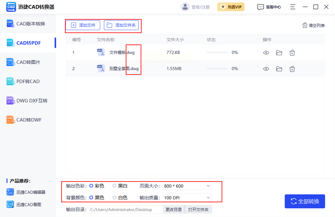步骤二:通过点击“添加文件”或直接拖拽的方式,将需要转换的DWG图纸导入软件。它的优势在于支持一次性添加大量文件,实现批量转换,极大提升效率。