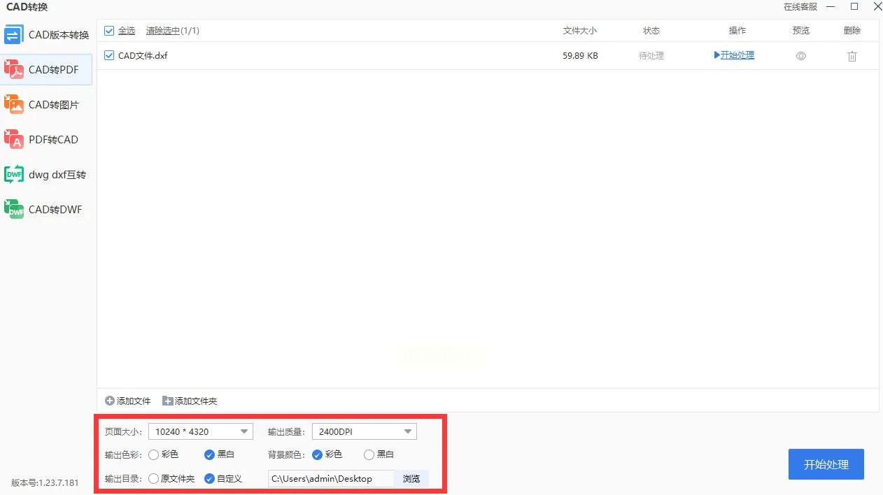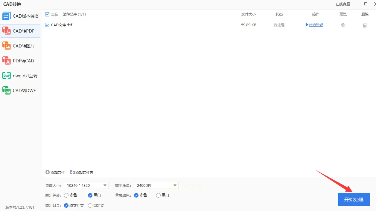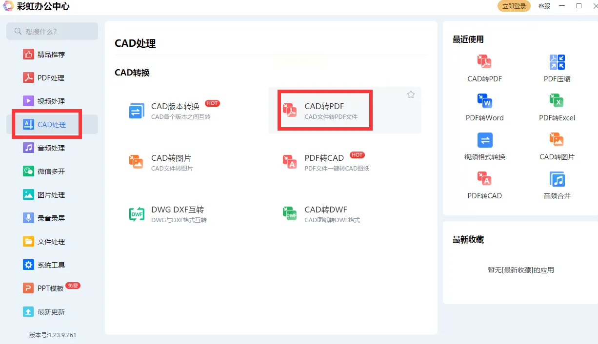 1. 功能定位:在左侧导航栏找到“CAD处理”→“CAD转PDF”