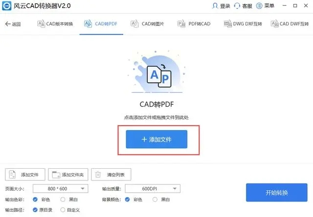 2. 文件添加:点击“添加文件”或直接拖拽CAD文件到界面,支持CAD版本自动识别