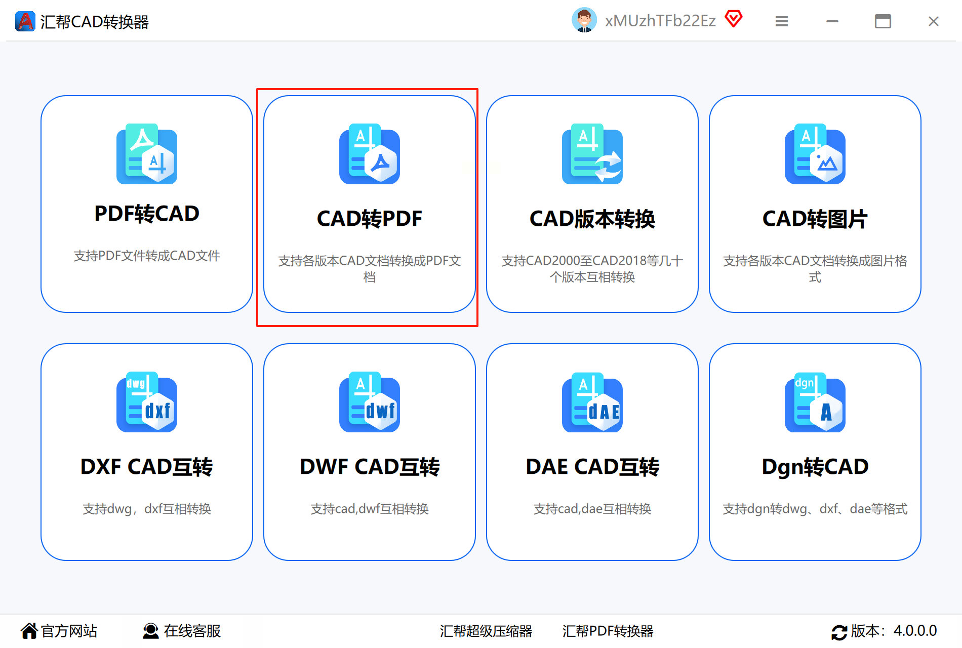1. 功能选择:打开软件后,在首页点击“CAD转PDF”功能模块