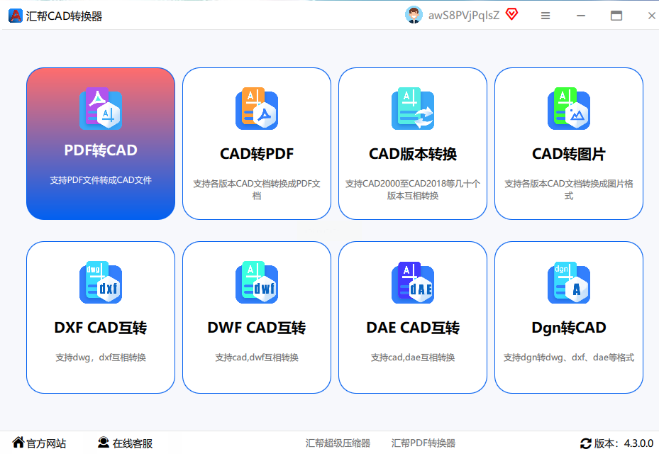 1. 启动并选择功能:在电脑上打开“汇帮CAD转换器”软件。主界面通常会清晰列出各种转换功能,你直接找到并点击“PDF转CAD”或类似字样的选项,进入专属操作面板。
