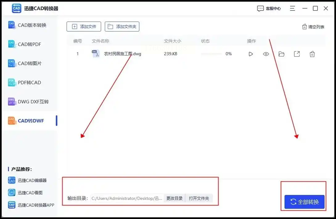 步骤二: 点击“添加文件”或类似按钮,将你需要转换的DWG格式图纸导入到软件列表中。大部分这类工具都支持一次性拖入多个文件,实现批量操作,这对提升效率帮助巨大。