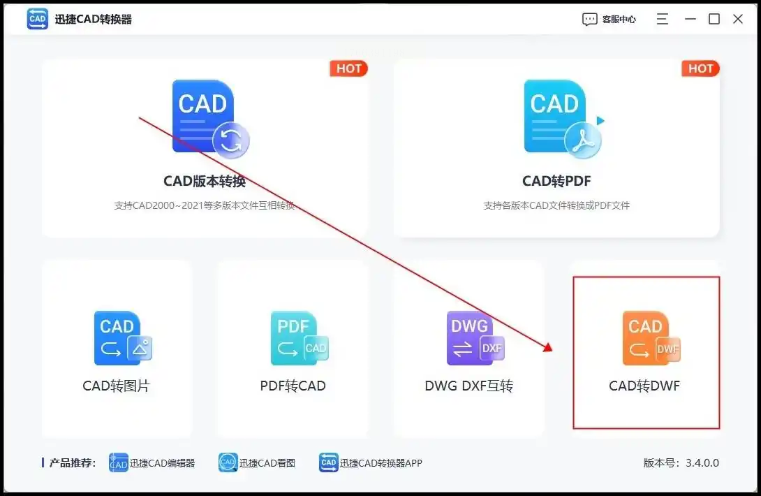 步骤一: 安装并打开该转换器软件。在主界面上,你会看到一系列功能图标,找到“CAD转DXF”或类似命名的功能入口并点击进入。