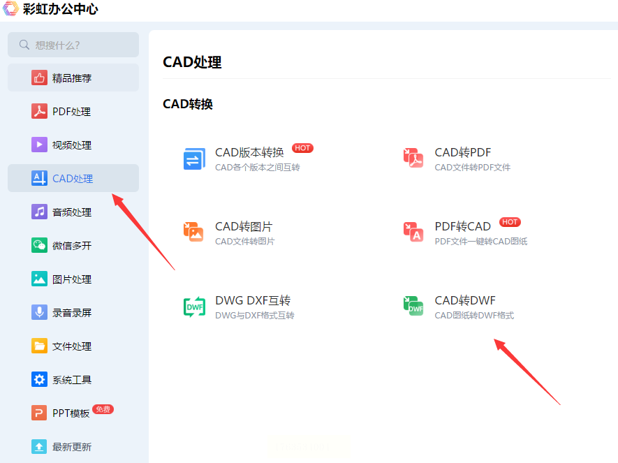 1. 打开软件,在首页选择“CAD处理”功能,点击“CAD转DWF”进入转换界面。