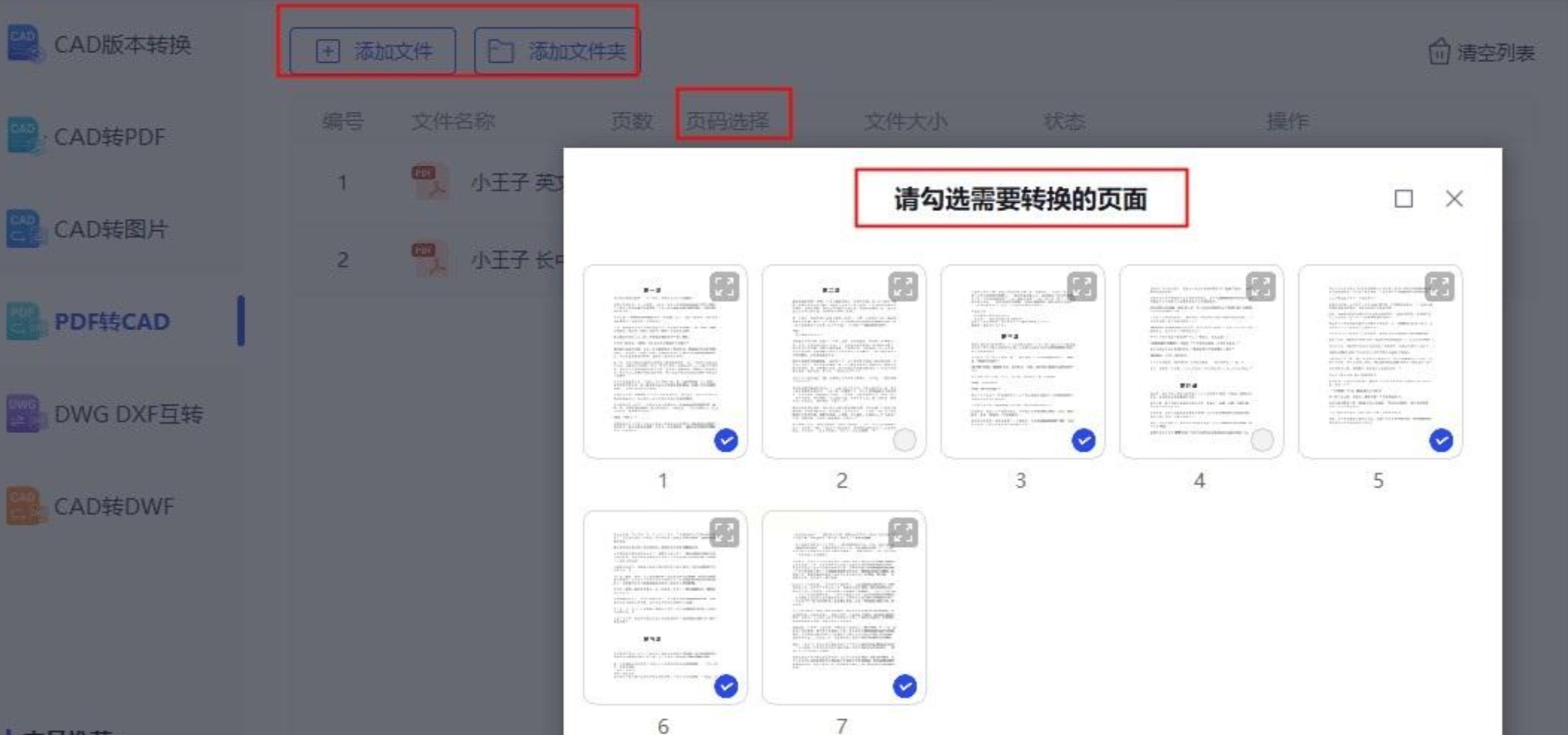 - 电脑端:点击首页"PDF转CAD",支持拖放或点击"添加文件",单次最多导入20个PDF文件