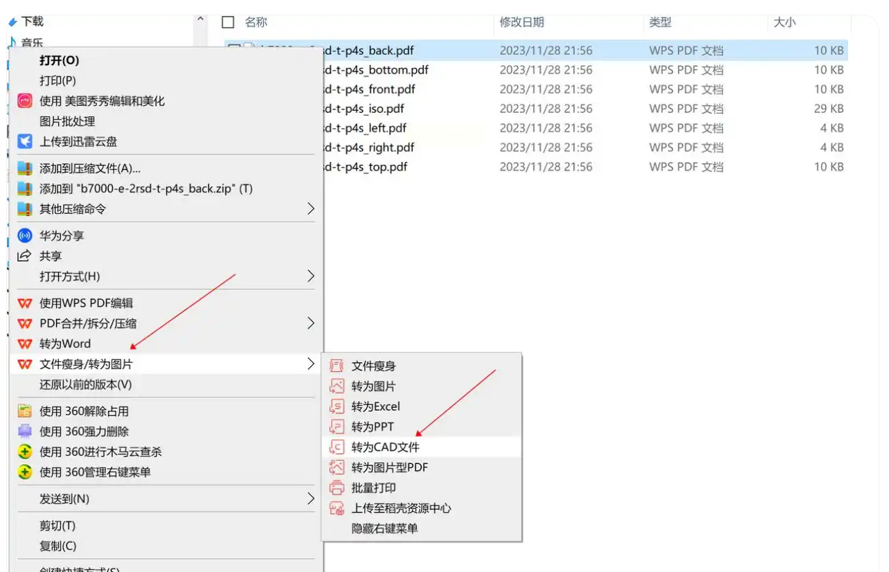 2. 选择功能:右键菜单中找到“PDF工具”→“转为CAD文件”(第一次用可能需要加载插件,稍等几秒)