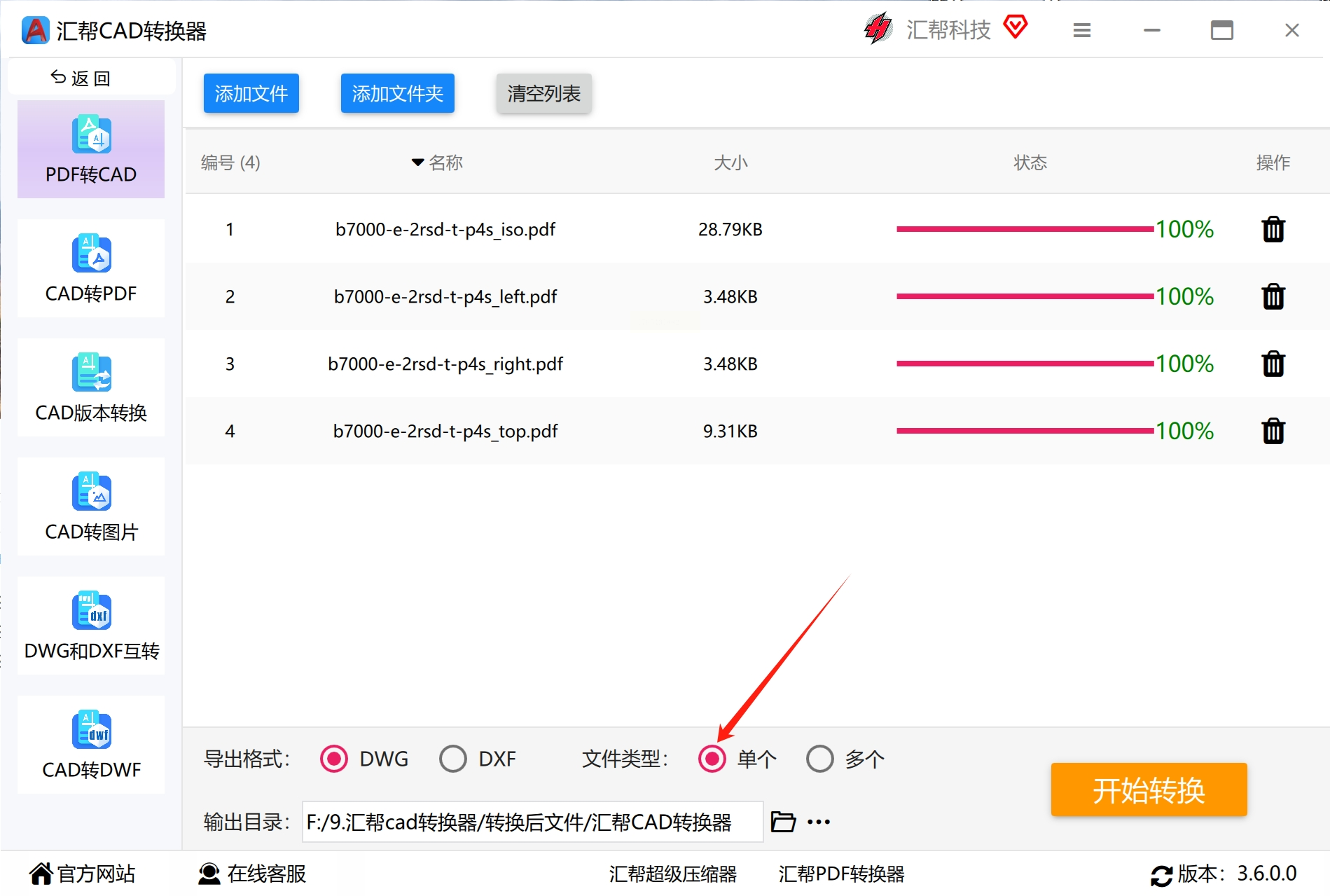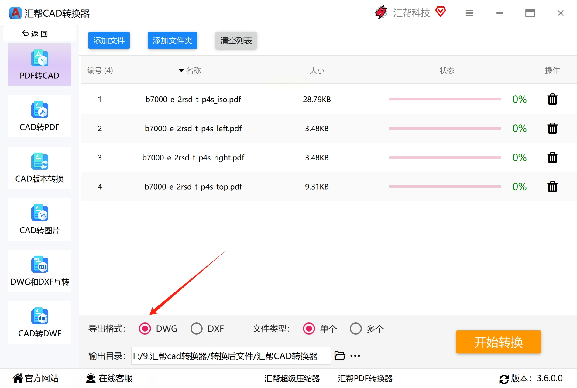 PDF转CAD方法一:使用汇帮CAD转换器