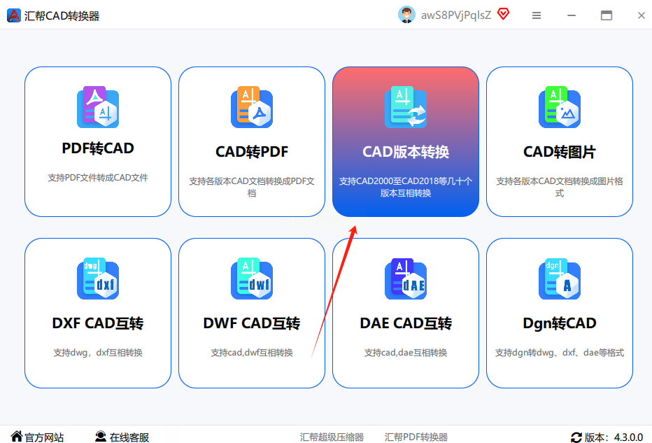 2. 功能定位:在首页功能区找到"CAD版本转换"选项(图标通常是一个带有向上箭头的文件夹),点击进入专门的转换界面。
