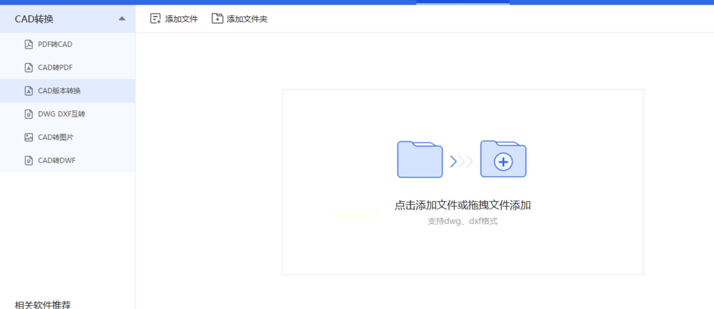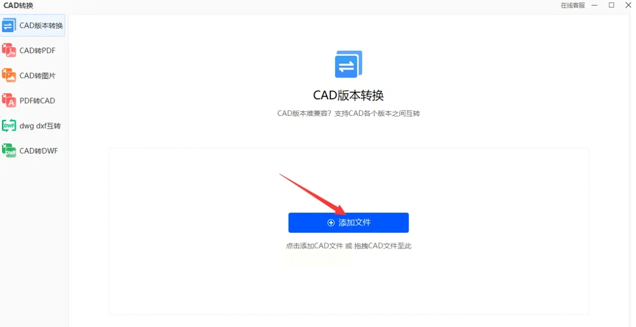2. 上传文件:点击“添加文件”按钮,从电脑里选择需要转换的CAD图纸。这里有个优点——支持批量上传!如果你有一堆图纸要转,可以一次性全选上传,不用一个个来。