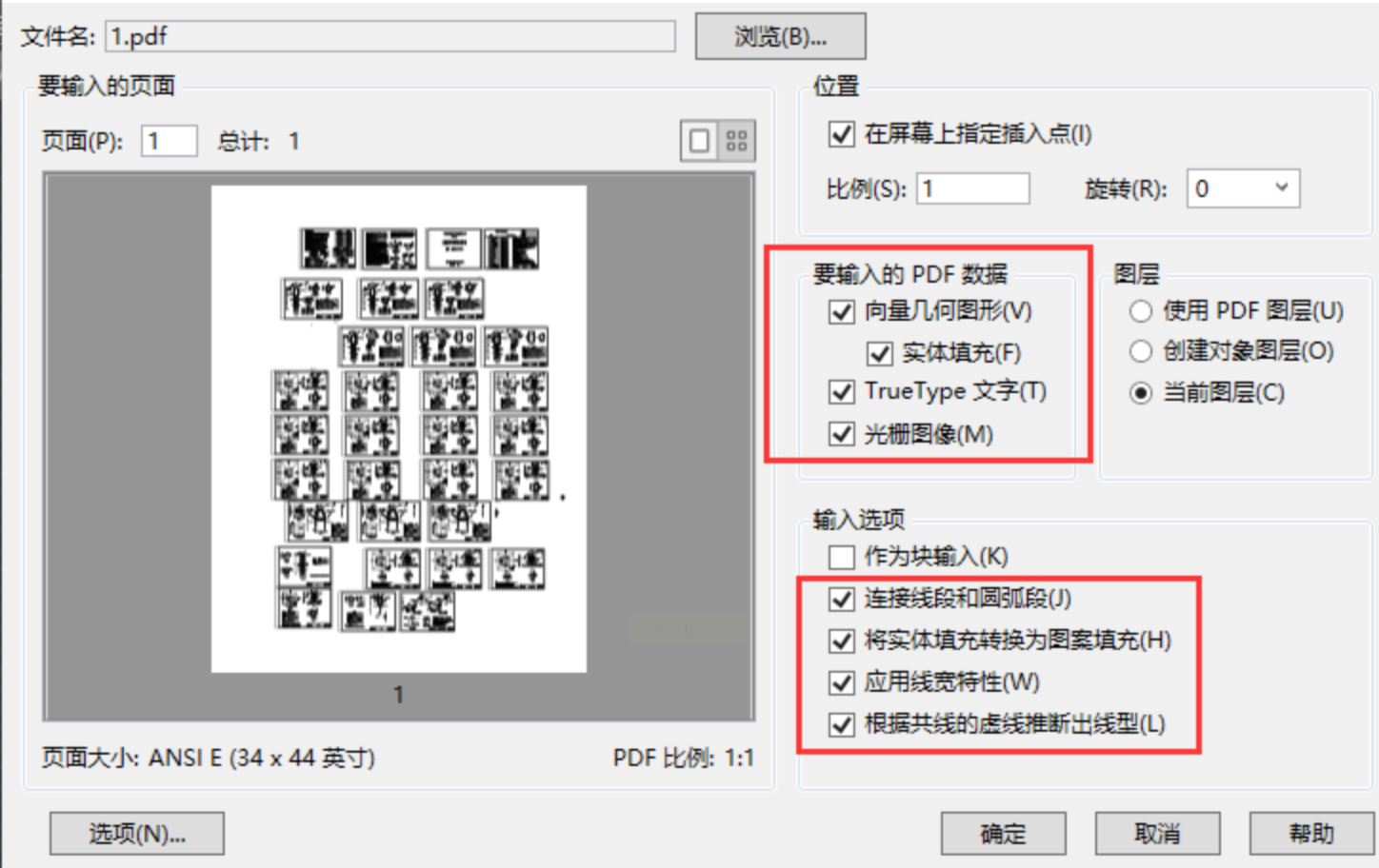 3. 打开AutoCAD,新建一个DWG文件。在命令行输入“PDFIMPORT”命令,将上一步得到的PDF文件导入进来。