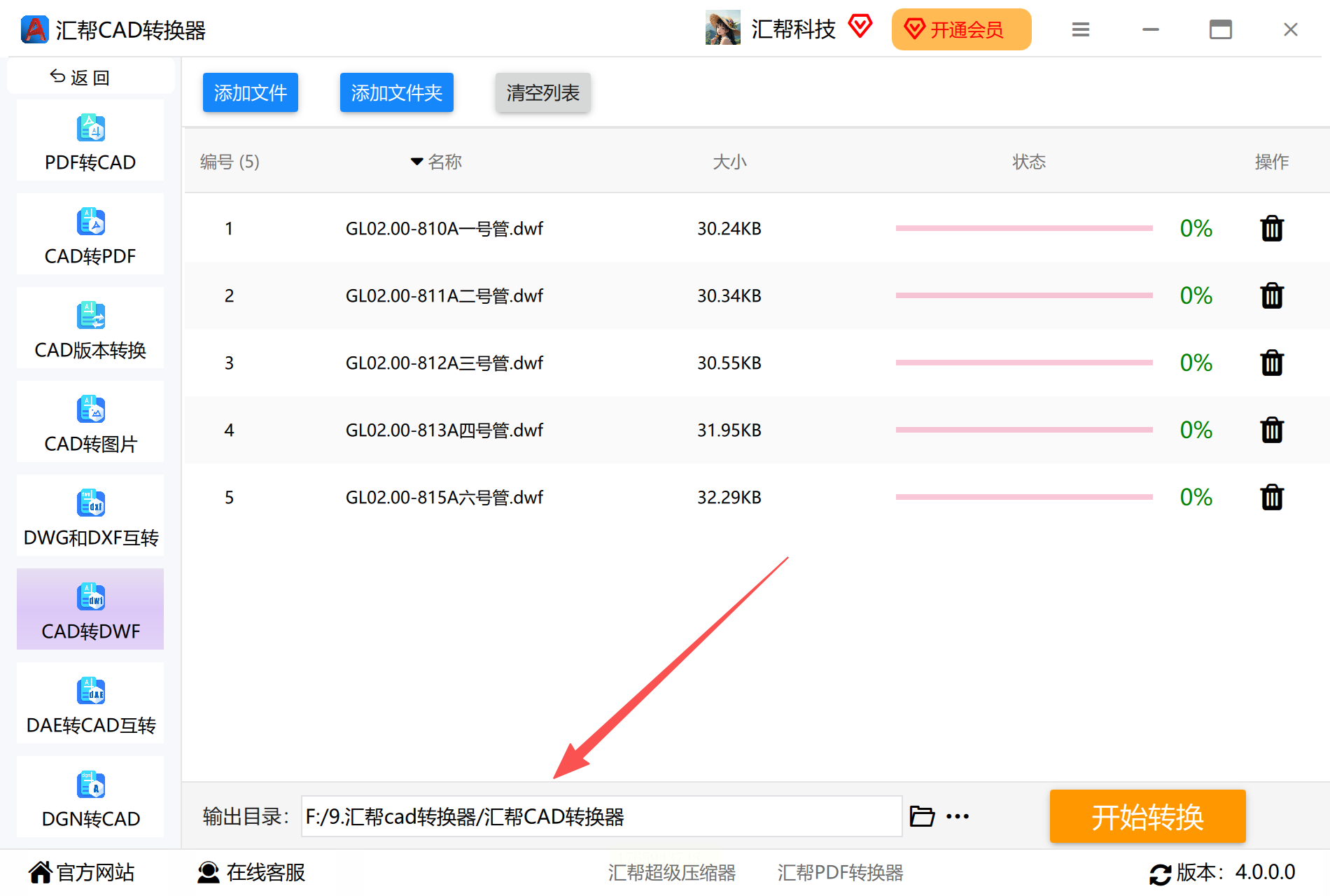 4. 最后,点击右下角那个醒目的“开始转换”按钮。喝口水、回个微信的功夫,转换就完成了。去你刚才设置的输出文件夹里看看,崭新的DWG文件已经躺在那儿等你编辑了!