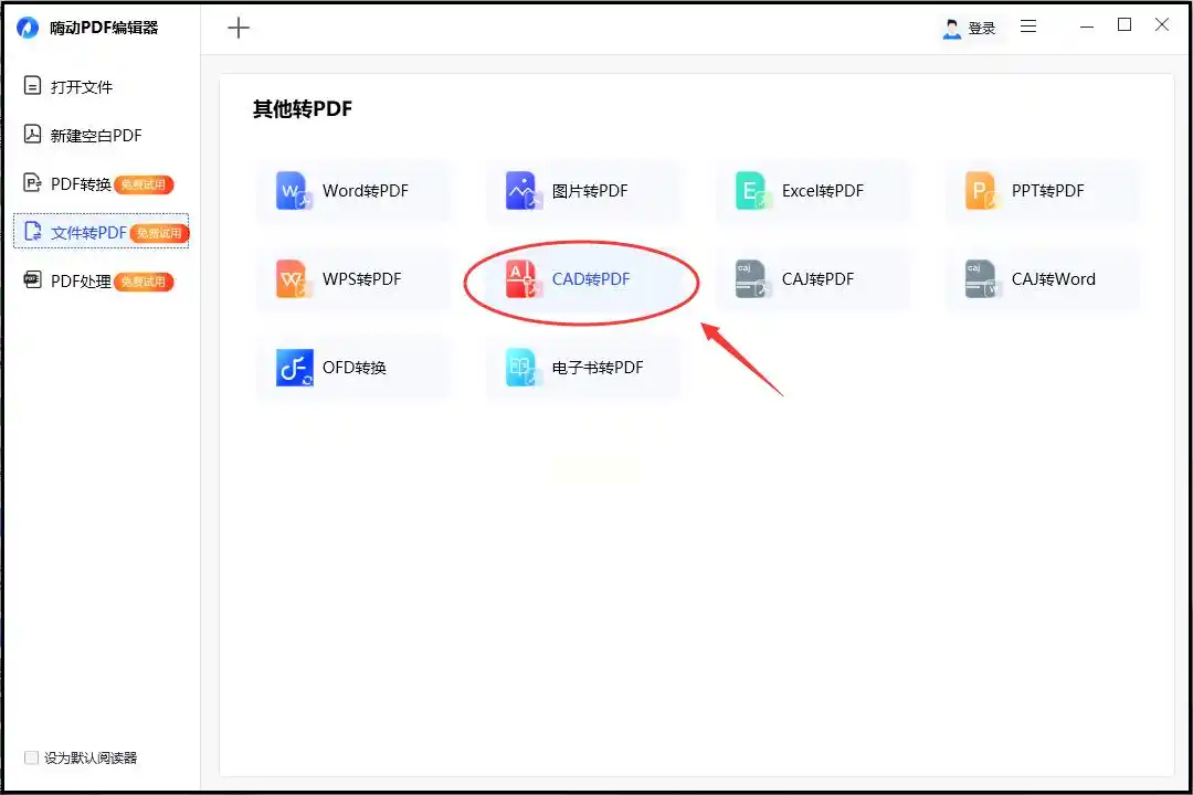 1. 功能入口:打开软件后点击左侧工具栏"文件转PDF",选择"CAD转PDF"模块。
