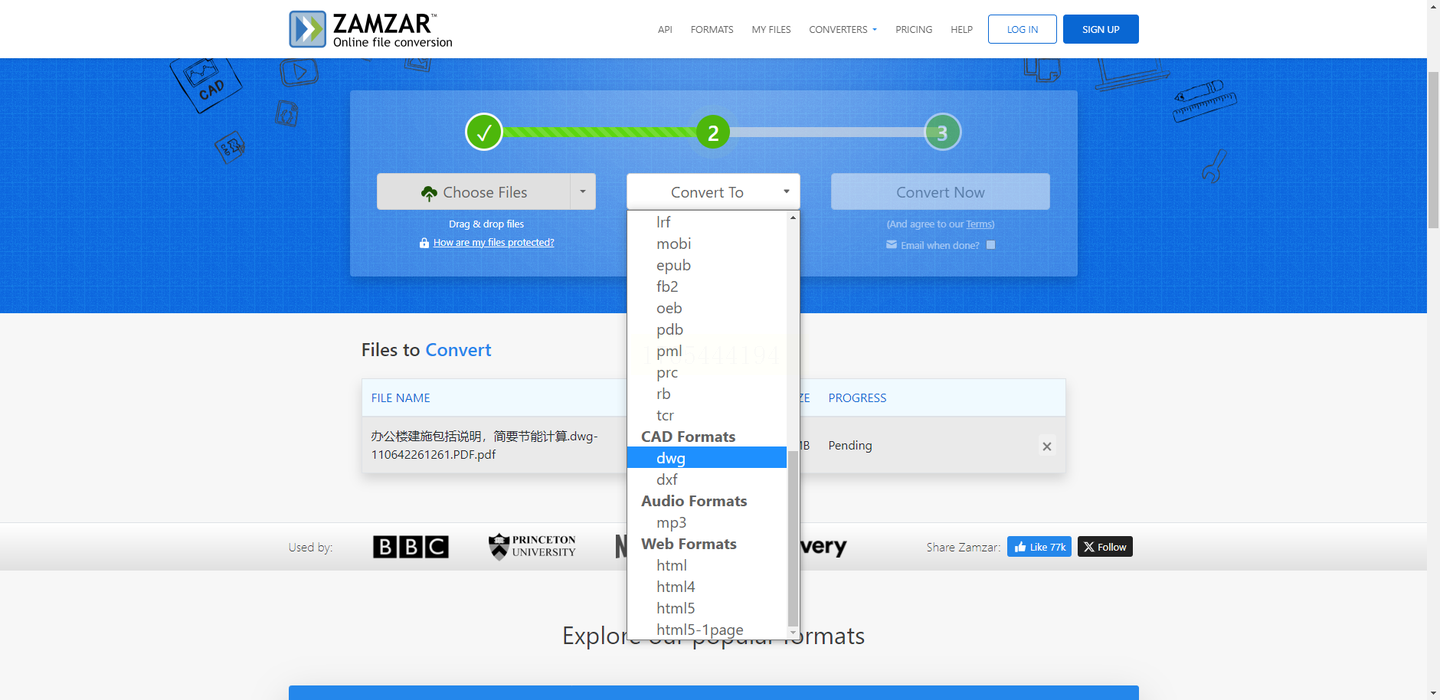 1. 访问Zamzar官网,上传PDF文件;