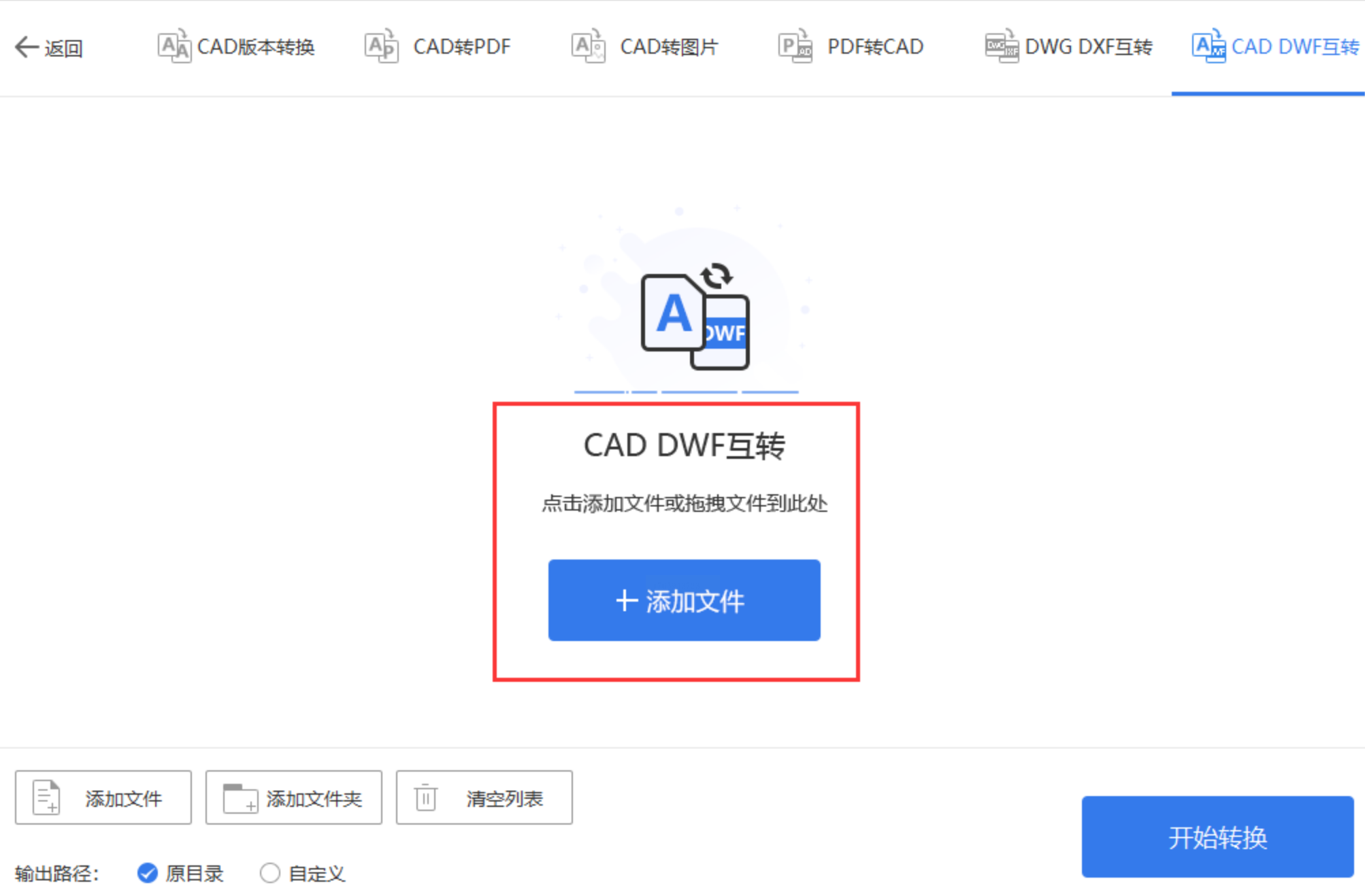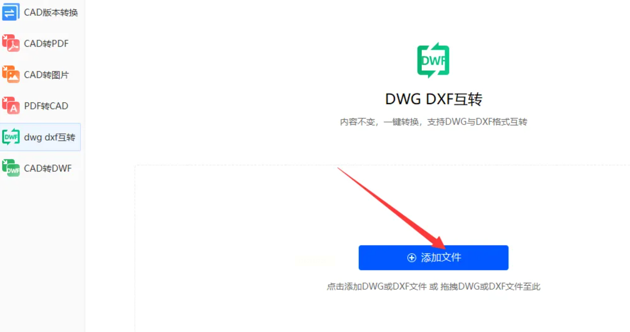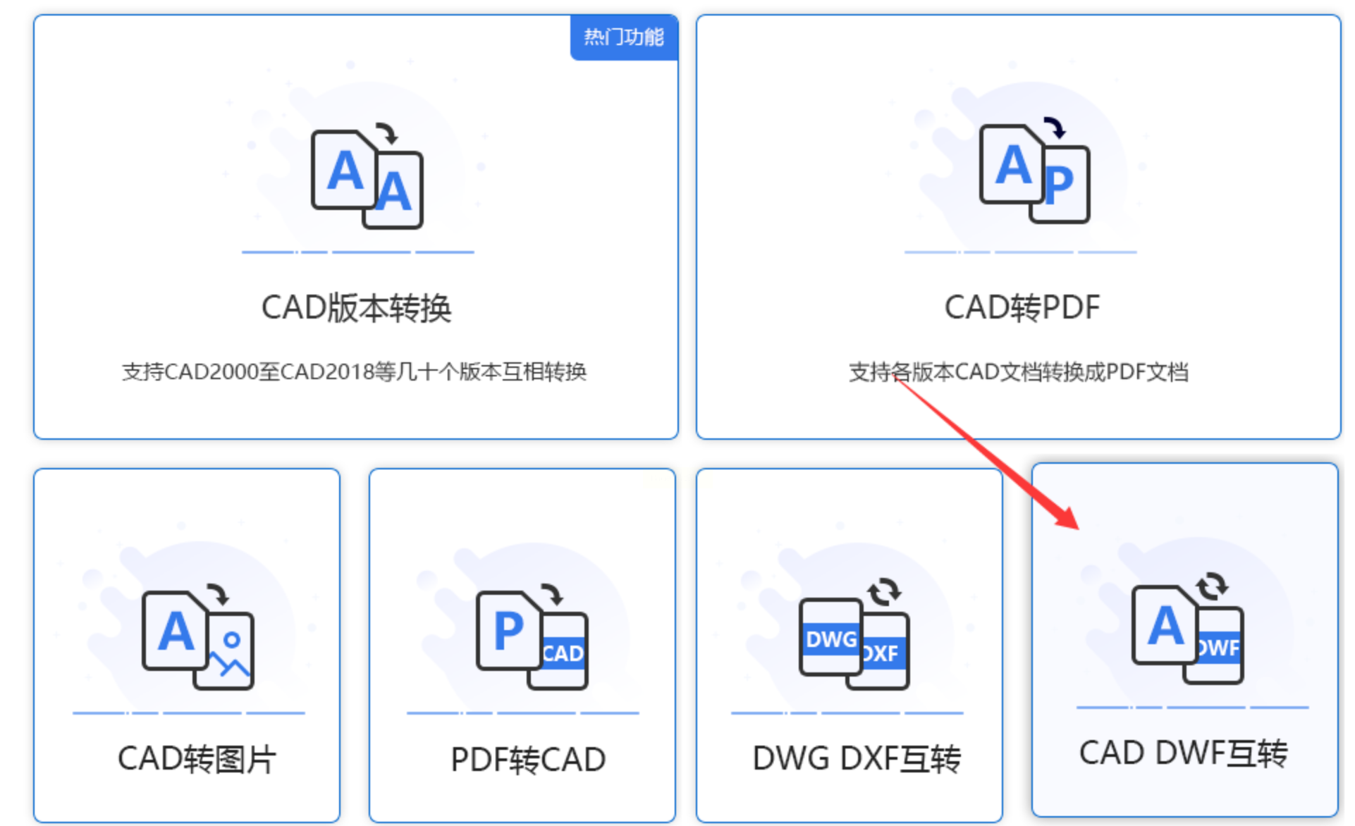 2. 功能选择:打开软件后,在主界面左侧找到“DWF CAD互转”模块,点击进入功能区