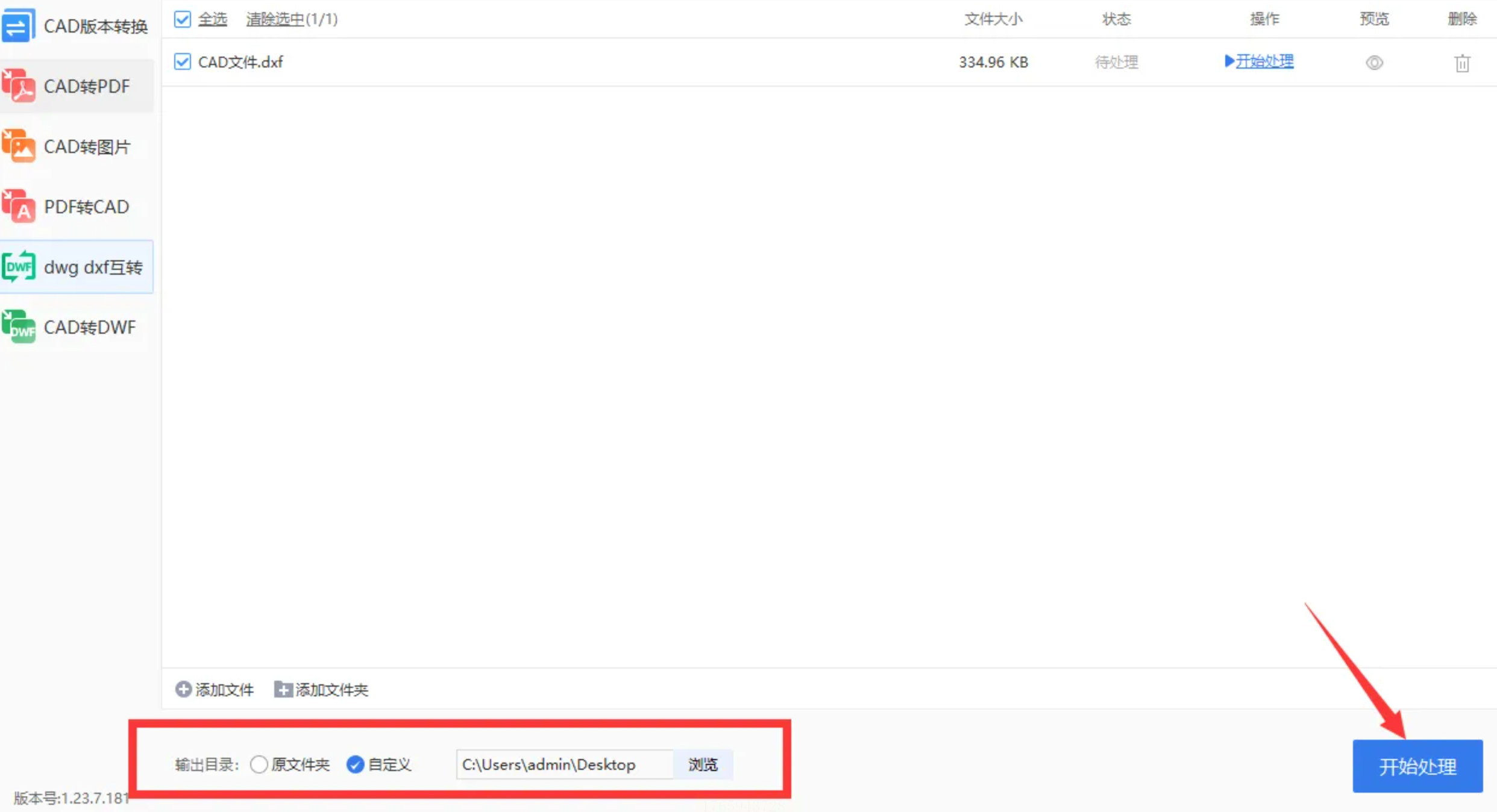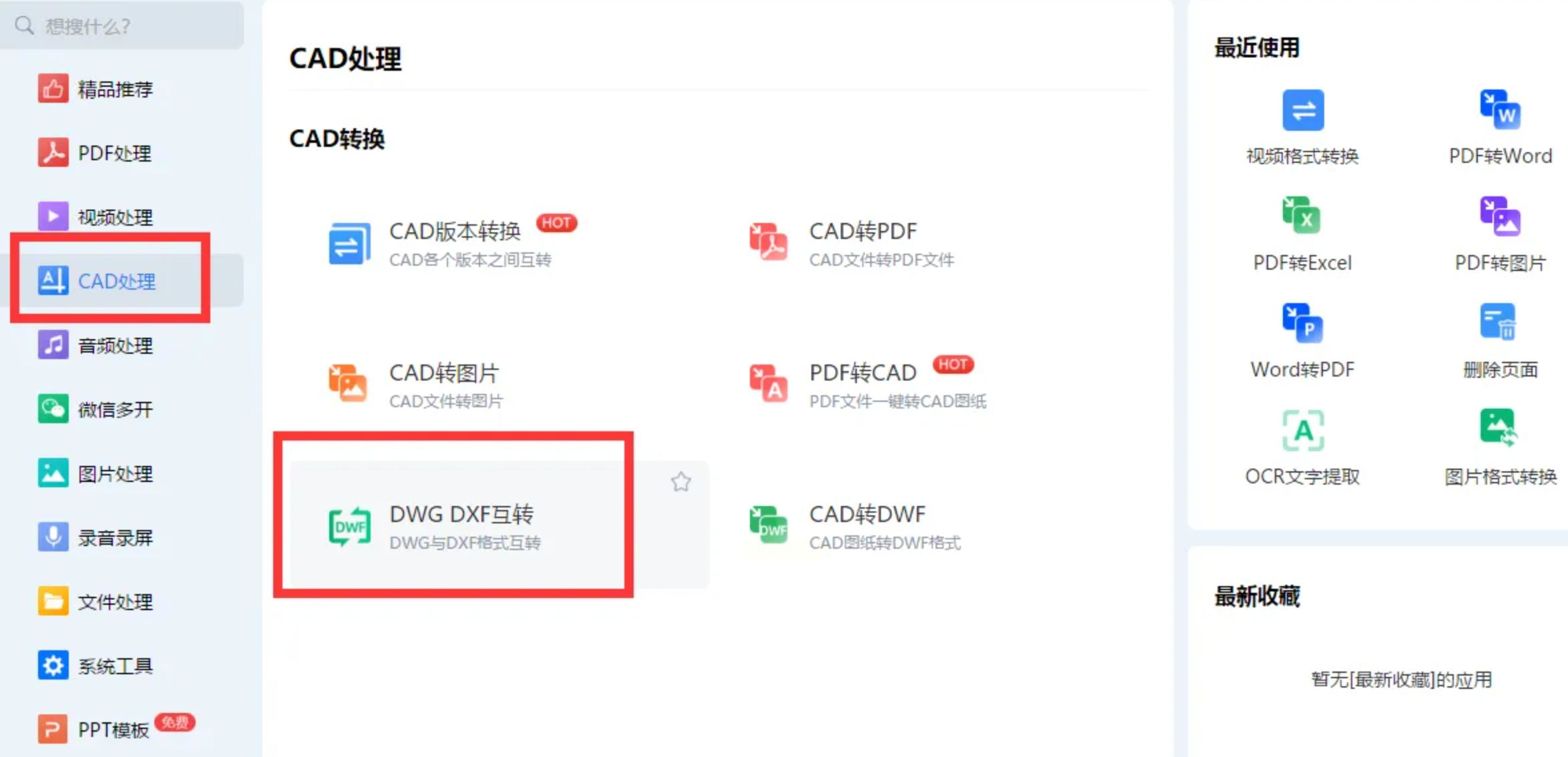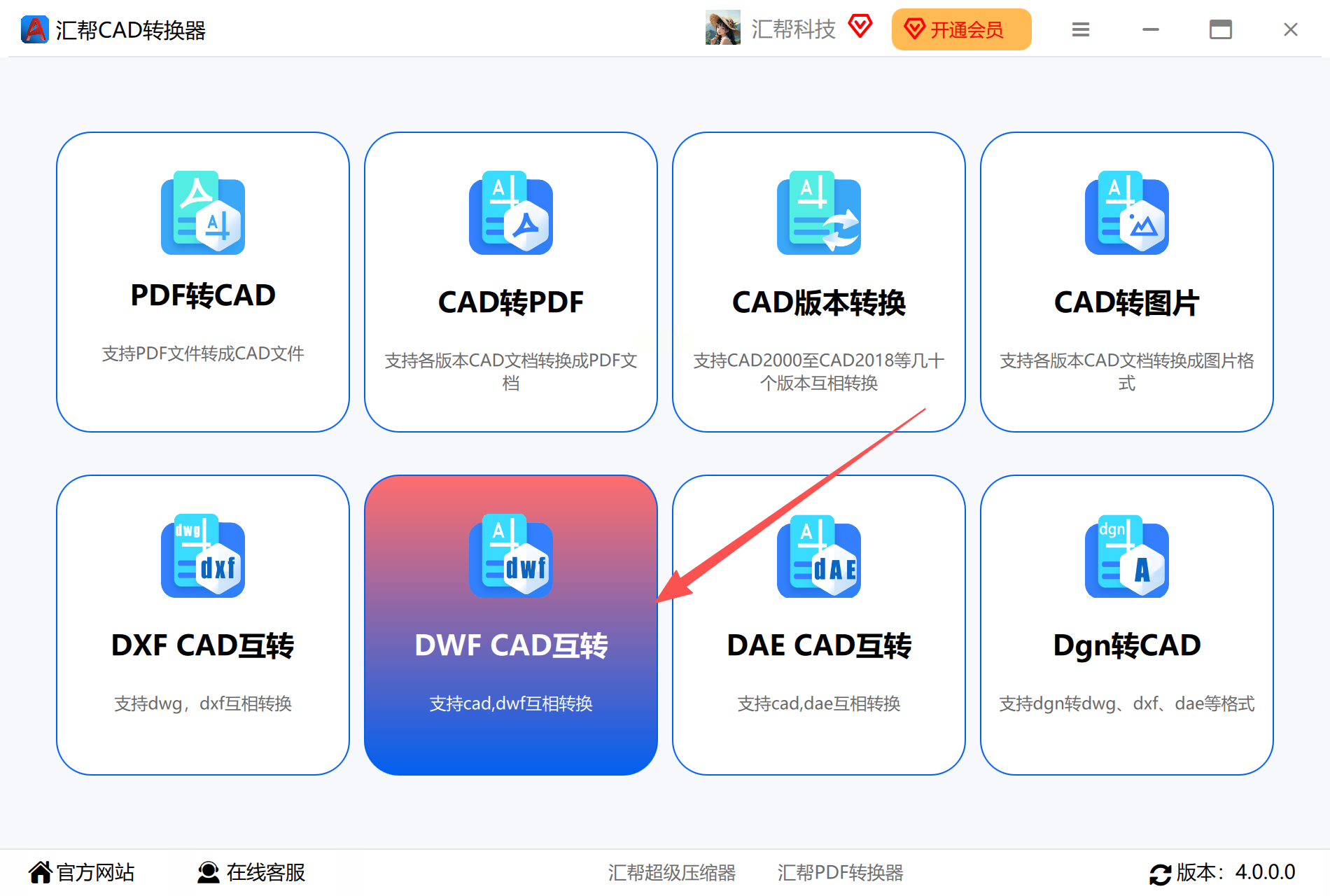 2. 功能选择:打开软件后,在主界面左侧找到“DWF CAD互转”模块,点击进入功能区