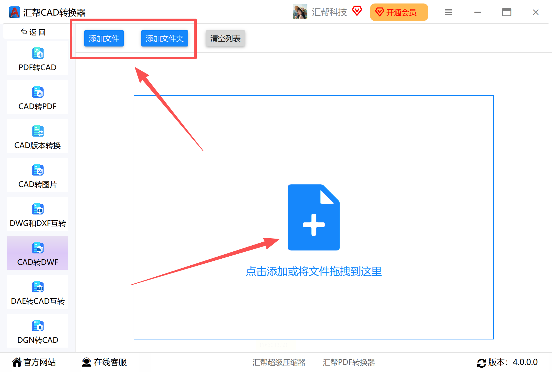 - 点击“添加文件夹”(适合同目录下的DWF文件)或“添加文件”(单个文件)
