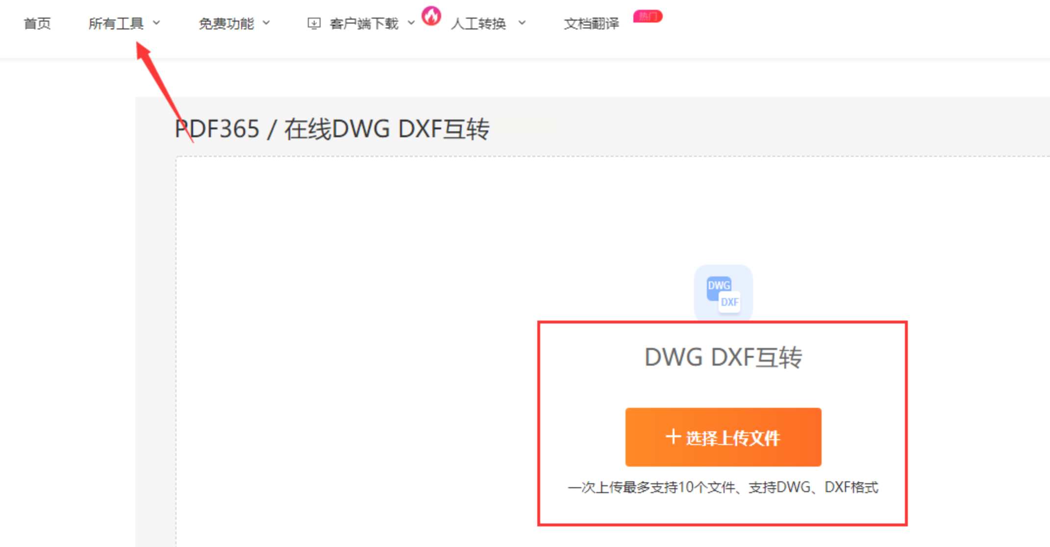 1. 访问平台:打开浏览器进入PDF365,选择“CAD转换”服务