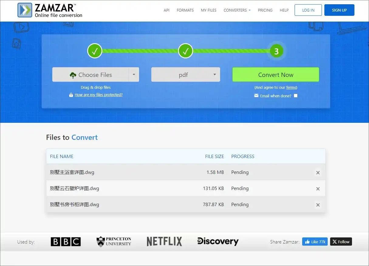 1. 打开浏览器,进入Zamzar官网(无需下载安装软件)。