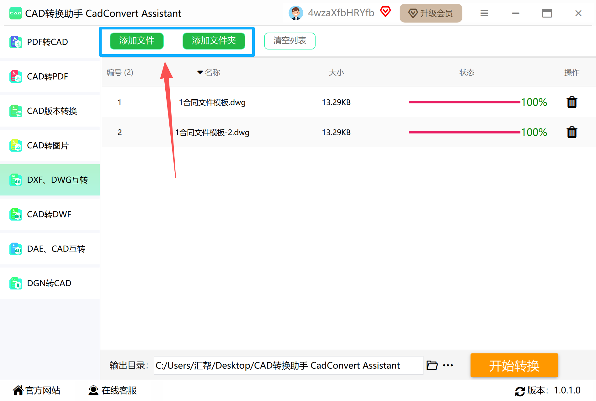 2. 点击界面中央的“添加文件”按钮,可单次或批量导入DWG文件(支持拖放操作)。