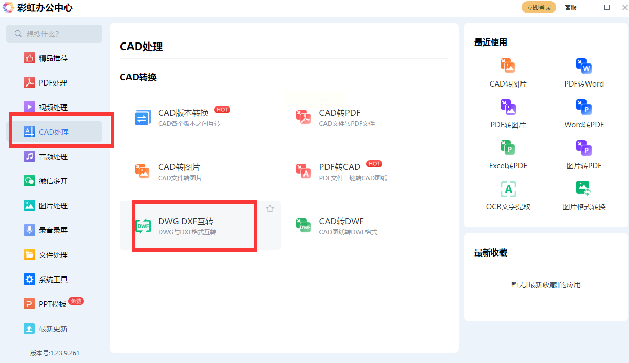 彩虹办公中心作为一款集成多种办公功能的软件,其CAD格式转换模块以简洁易用著称。对于仅需处理少量图纸的用户而言,无需安装庞大的专业CAD软件即可完成转换。