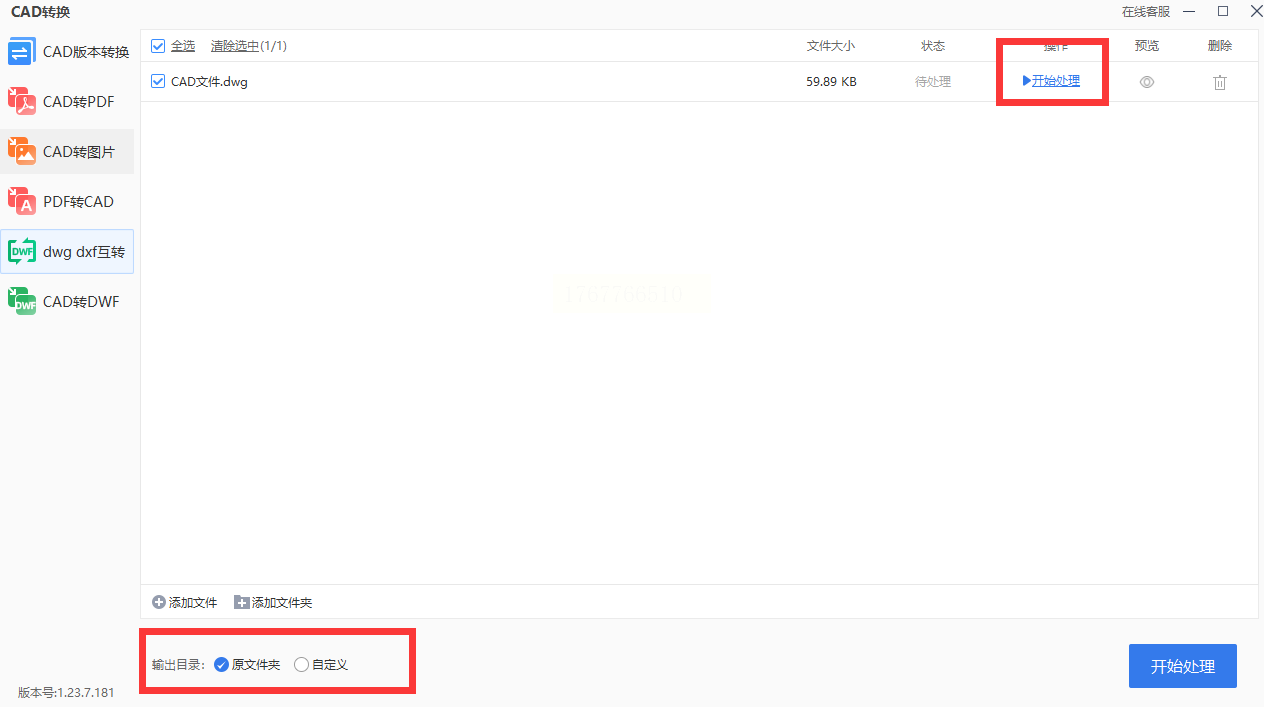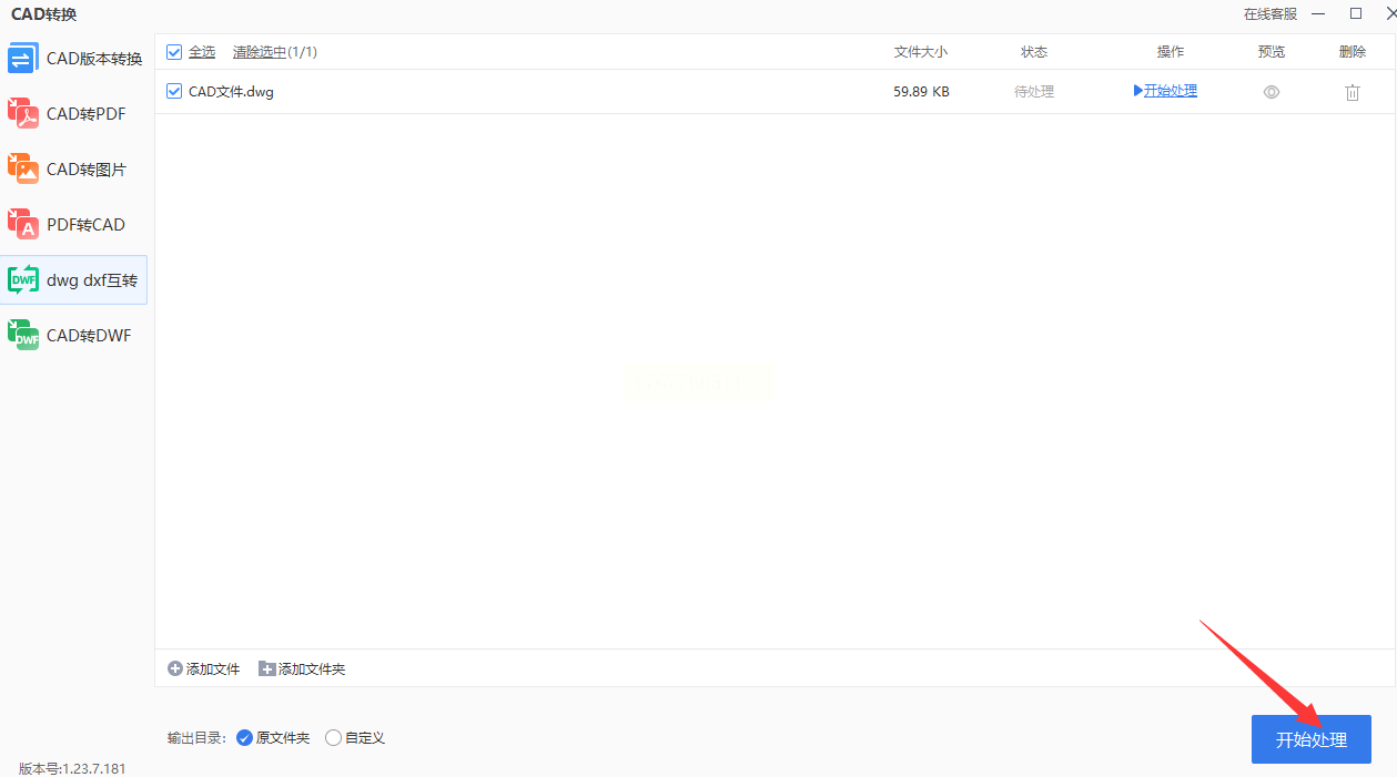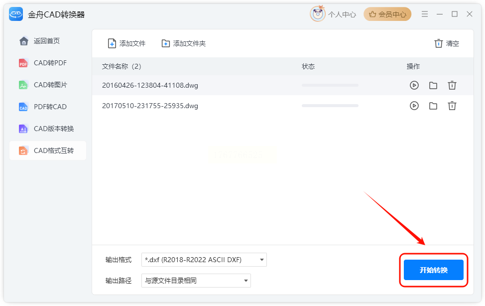 步骤一:导航首页选择dxfCAD互转,支持dwg、dxf互转
