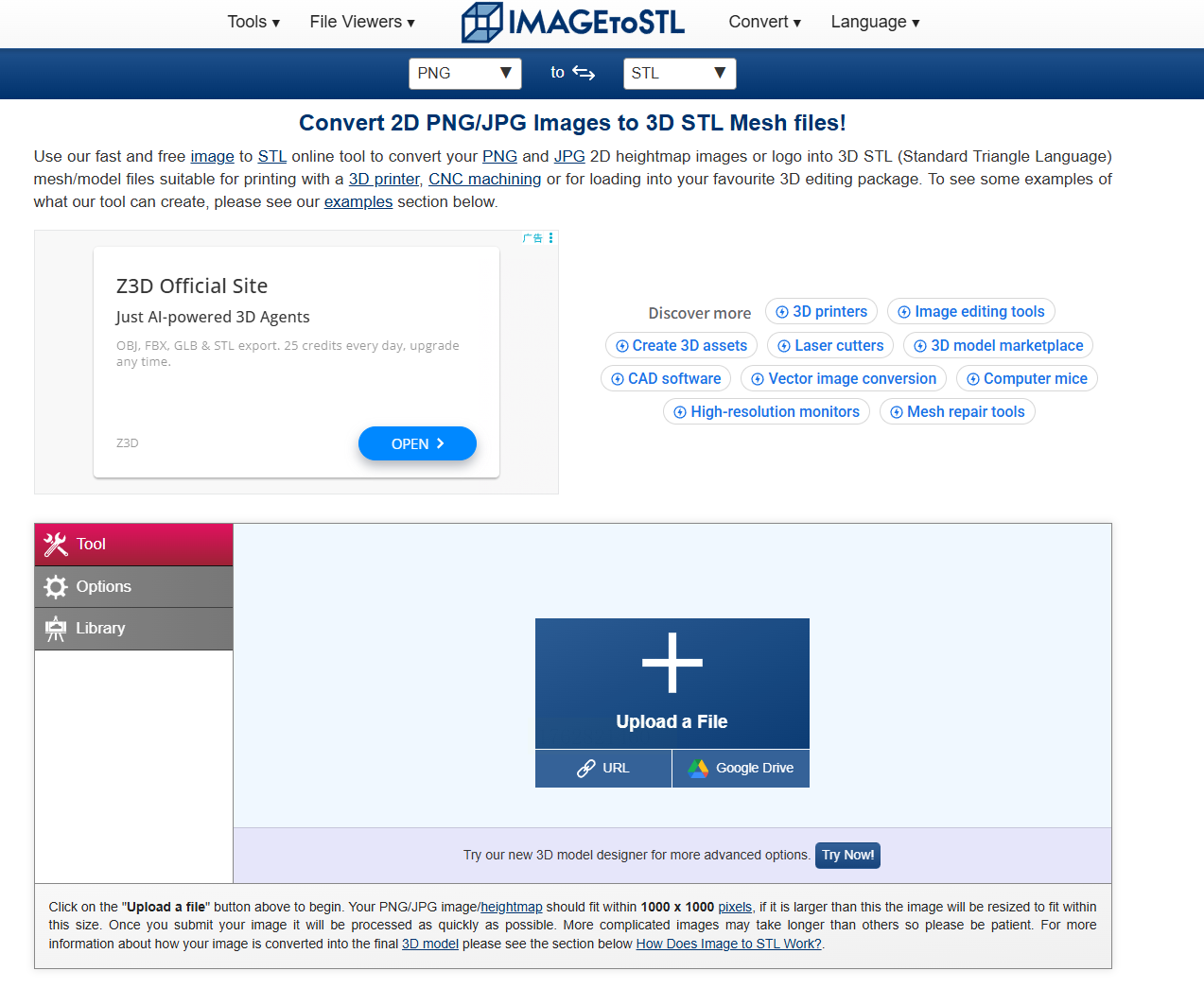 1. 打开ImageToStl在线工具,上传DXF格式的CAD文件