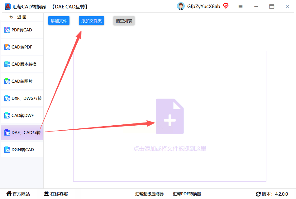首先在电脑上安装《汇帮CAD转换器》,安装完成后双击桌面图标启动程序。打开软件后,在功能菜单中找到"DAE CAD互转"选项,点击进入转换界面。软件界面设计简洁直观,主要功能区清晰可见,即使是初次使用的用户也能快速上手。