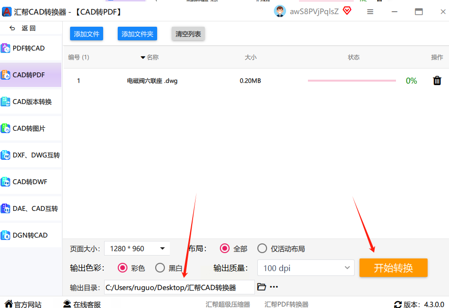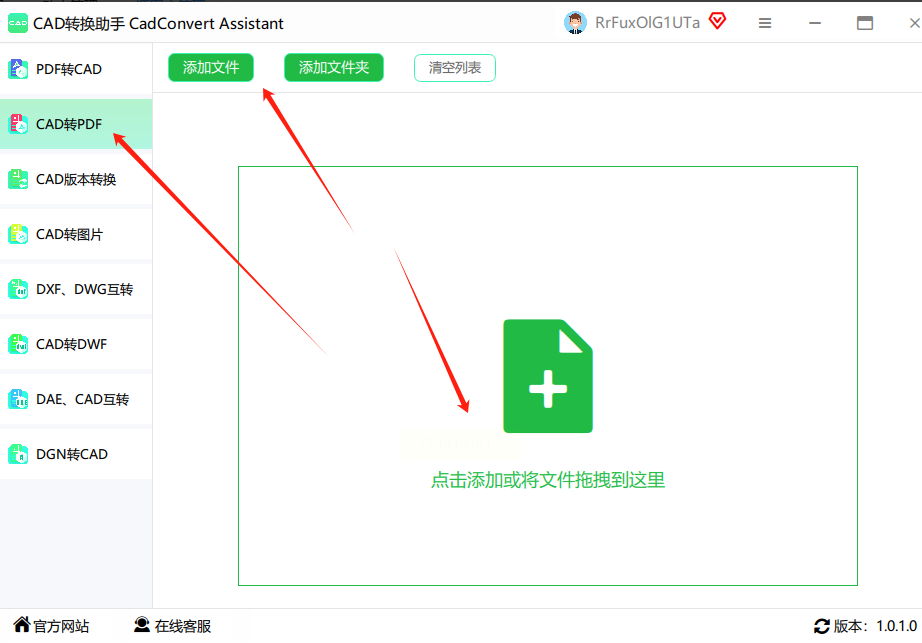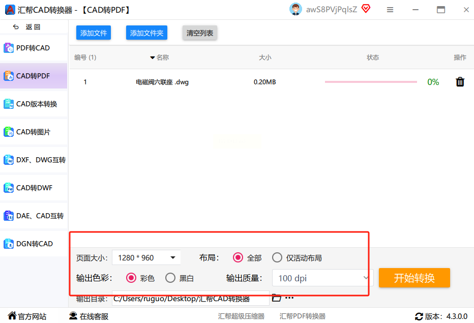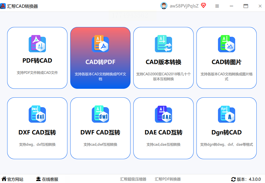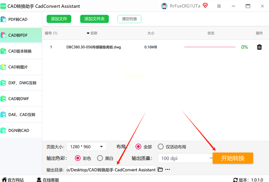 - 选择转换目标:“CAD转PDF”“PDF转CAD”等功能区一目了然