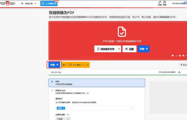 点击“开始转换”,软件会自动调用CAD引擎处理文件。