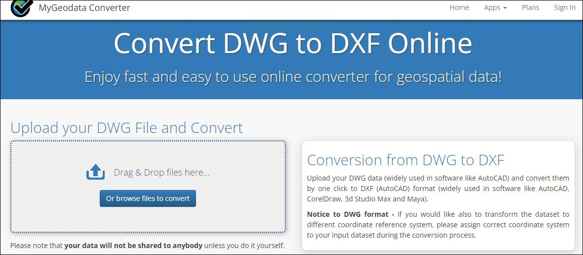 步骤一:打开您的网页浏览器,通过搜索引擎查找并访问名为“Convert DWG to DXF Online”的转换网站。请注意,该网站名称可能包含类似功能的多个变体,请选择信誉良好的站点。