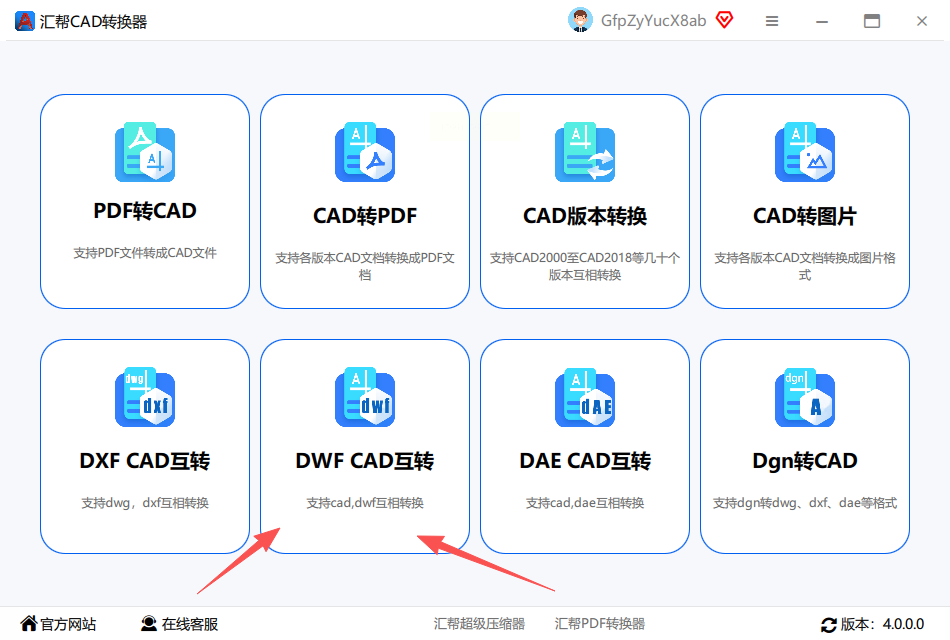 步骤一:启动电脑上已安装的《汇帮CAD转换器》软件。在主功能界面中,找到并点击“DWF CAD互转”这个功能模块,进入具体的转换操作页面。