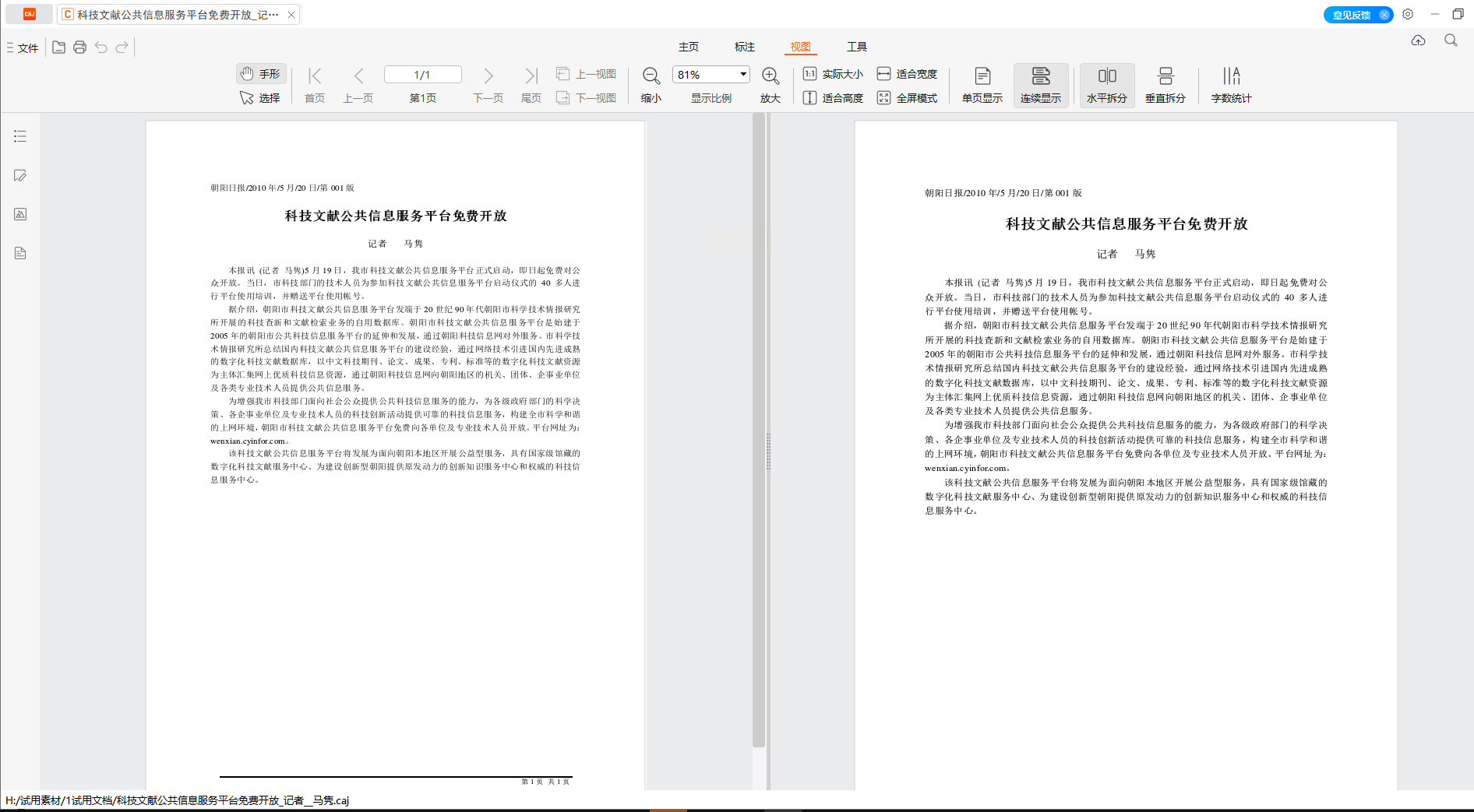 步骤一:用CAJViewer软件打开你的CAJ文件。通常双击文件就会自动用它开启。