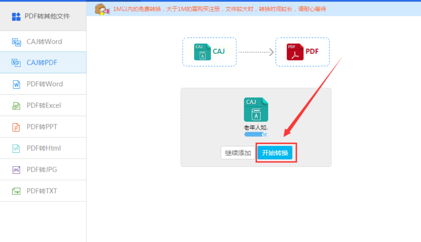 步骤二:通过点击“添加文件”按钮导入待转换的CAJ文档,或者直接将文件拖拽至软件指定区域,这种设计大幅提升了操作效率。