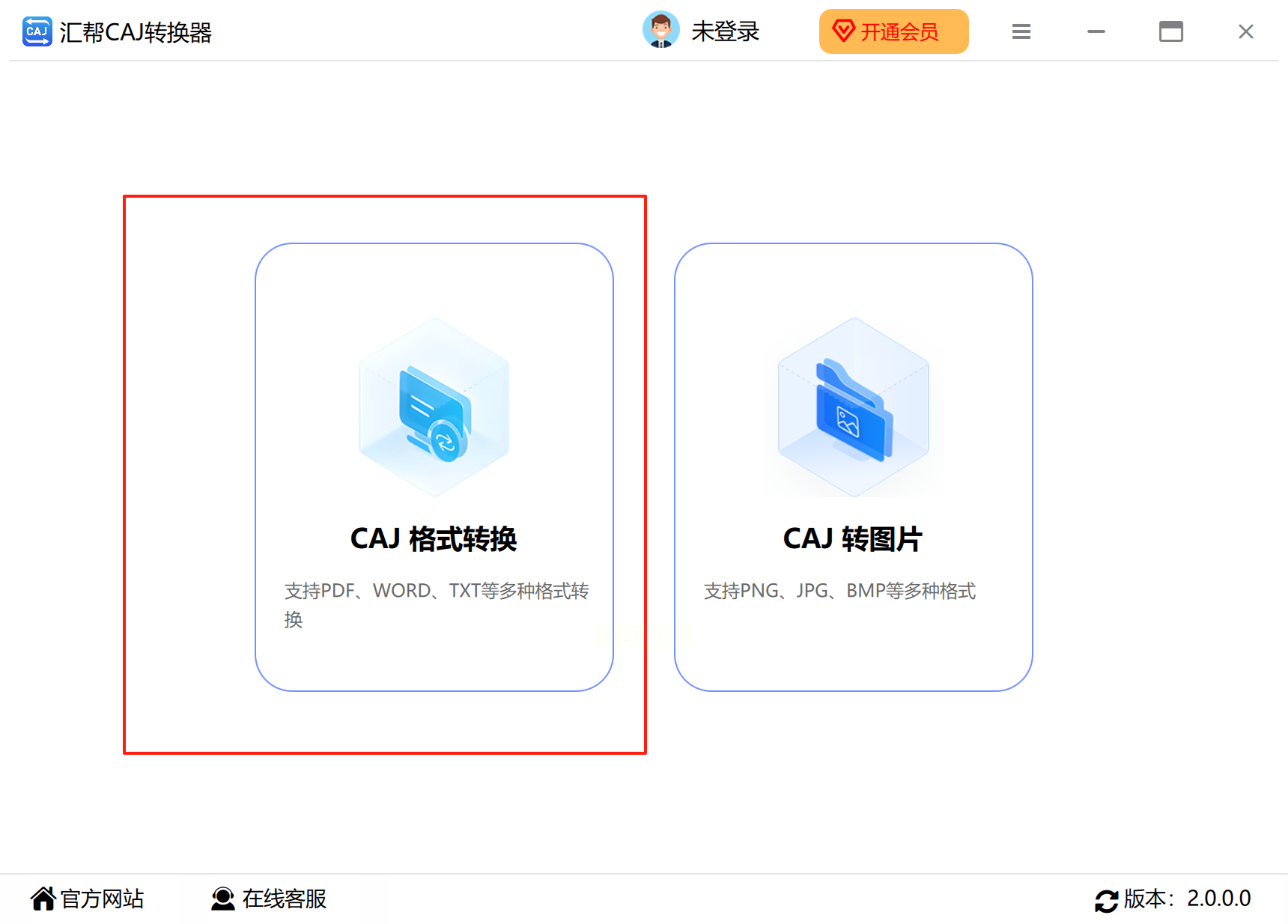 下载安装包(注意选择「无捆绑」版本),完成后打开软件,在首页选择「CAJ转其他」→「CAJ转PDF」。