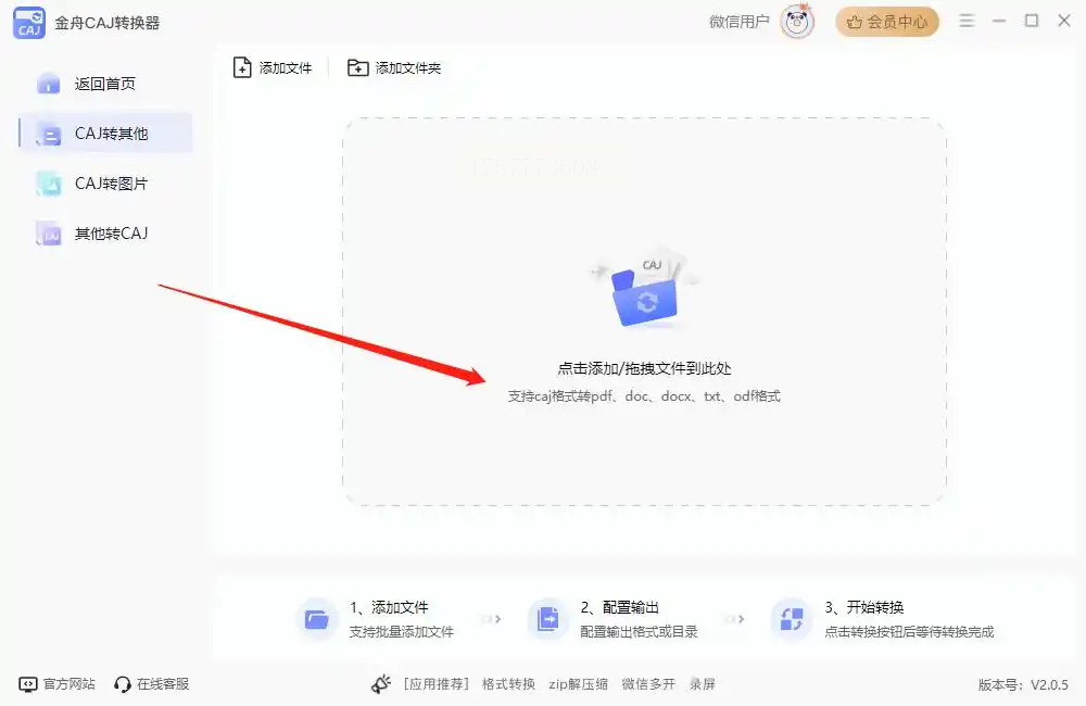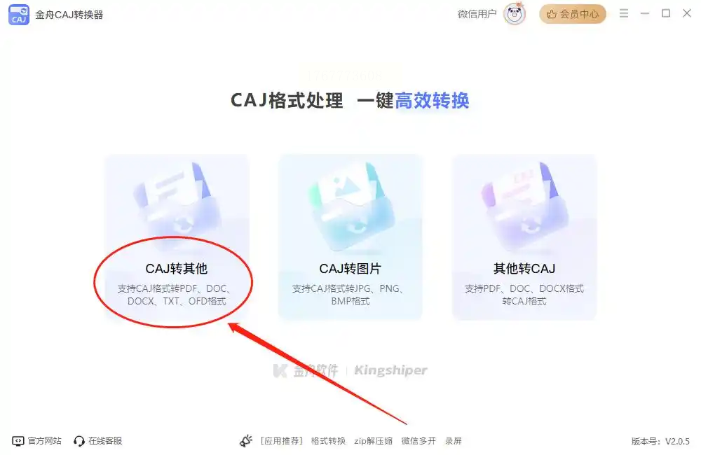 步骤一:打开软件后,直接点击“CAJ转其他”或类似选项进入核心功能页。