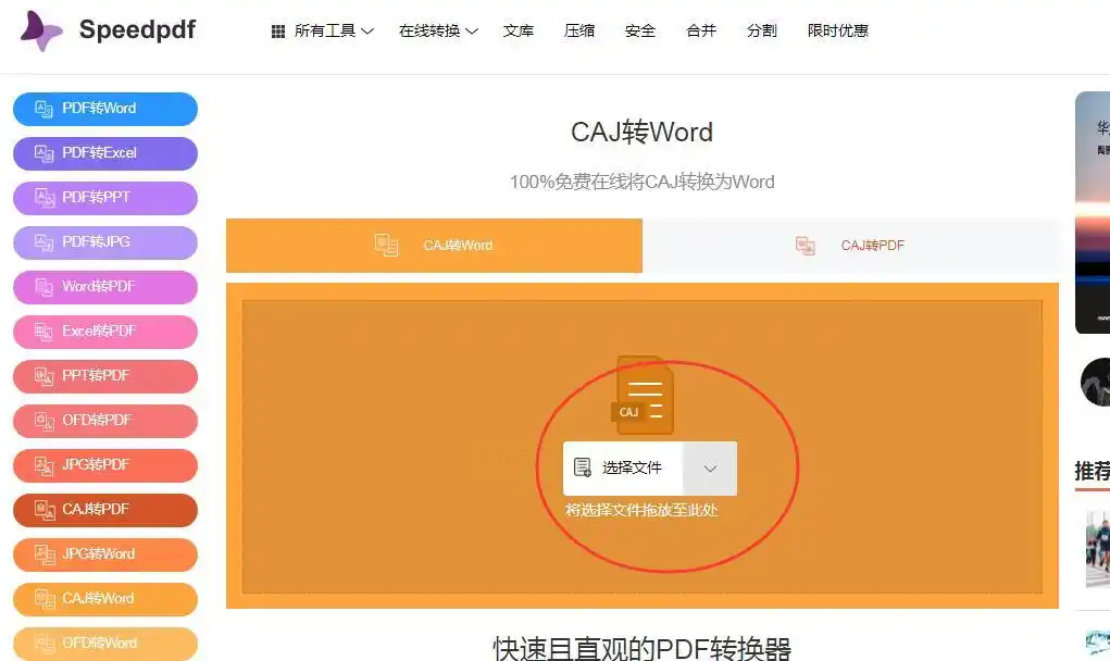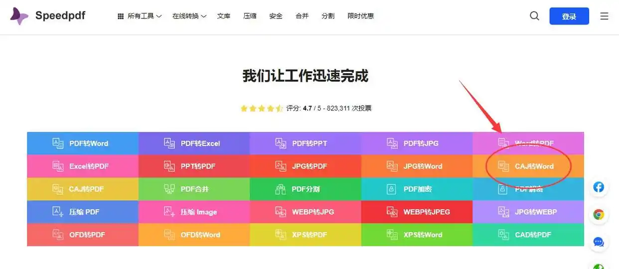 步骤一:用浏览器打开SpeedPDF官网,在首页工具列表中定位“CAJ转Word”功能。