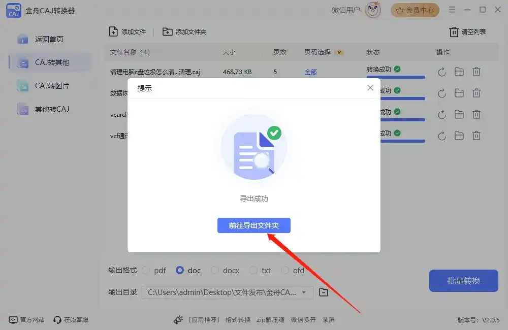 步骤五:转换进程结束后,可以直接在软件内打开输出目录,查看并使用转换好的Word文档。