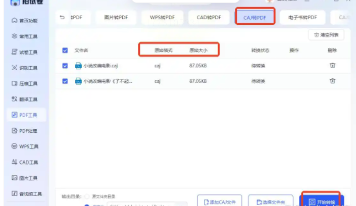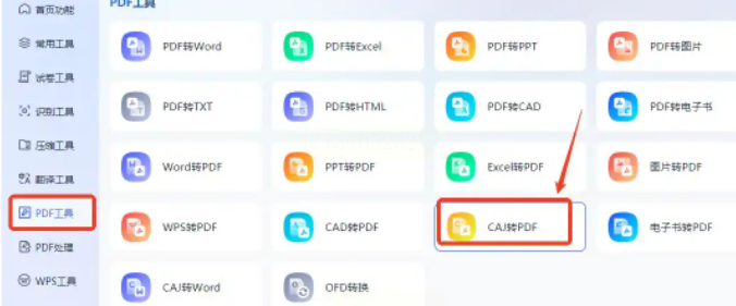 1. 打开软件:在左侧功能栏找“PDF工具”,点进去后能看到“CAJ转PDF”的选项。