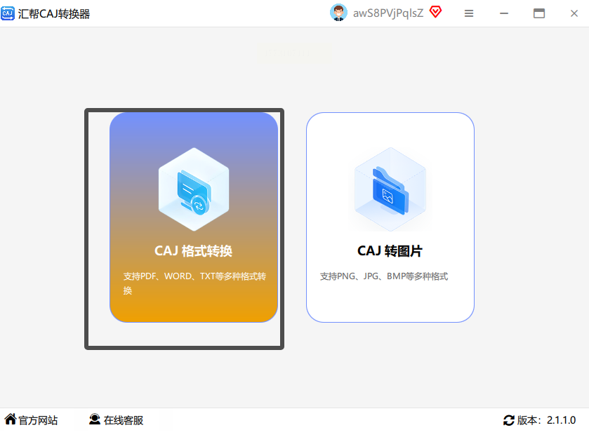 2. 选转换功能:进入网站后,在"CAJ转换"栏目里点"CAJ转Word",会弹出一个上传界面。