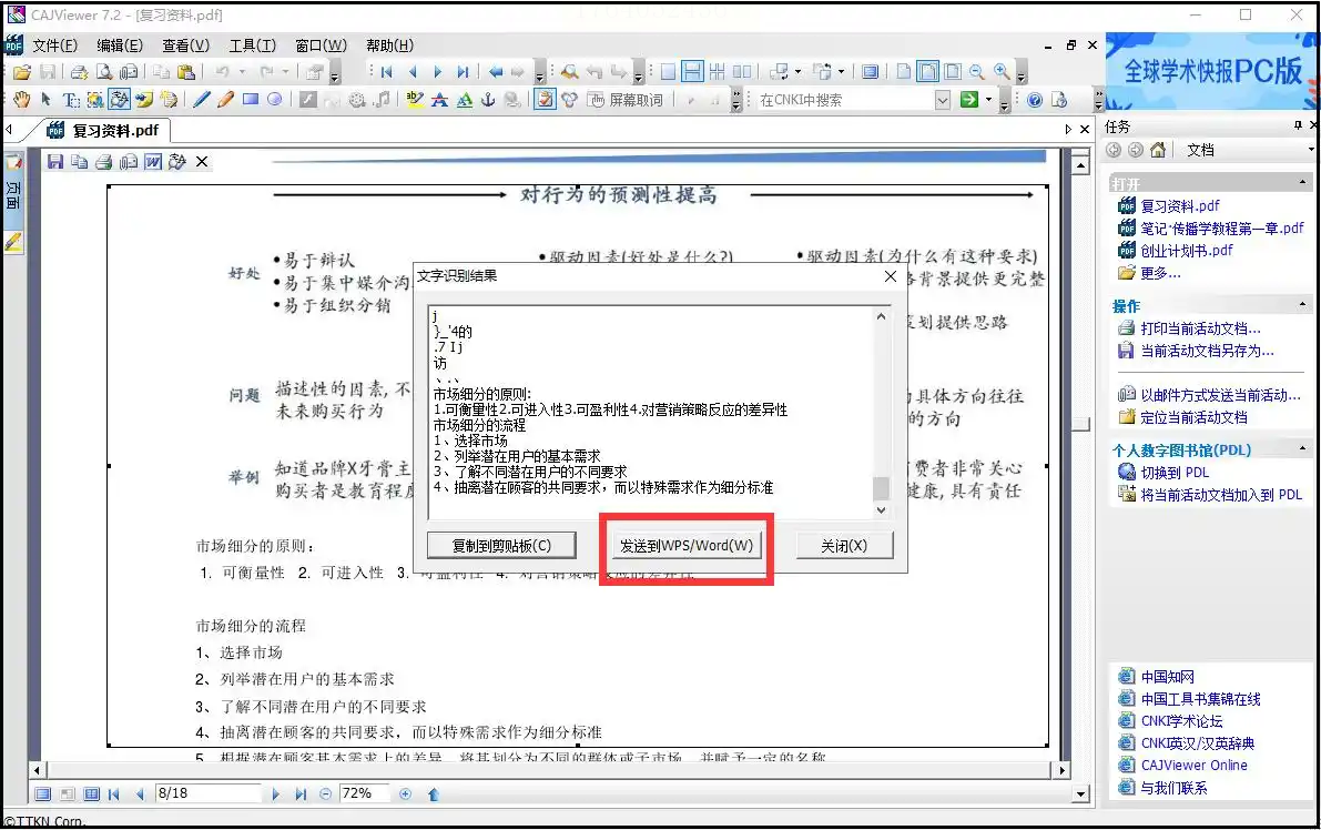 CAJViewer作为专业的CAJ文件阅读器,除了阅读功能外,还内置文本识别与转换工具,适合少量内容提取。